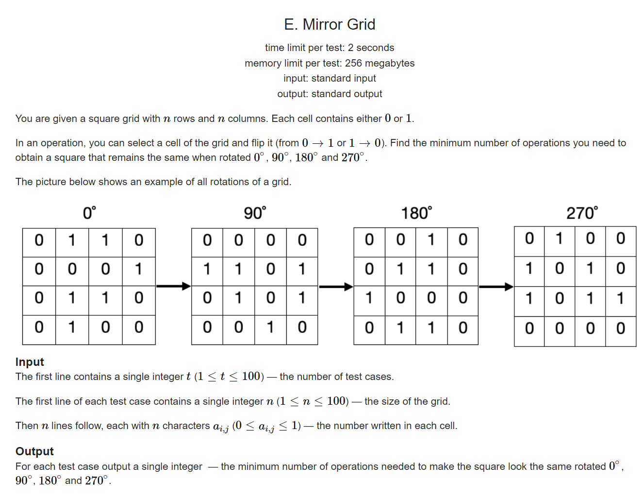 이 경우 합은 1인 셀이 1개 있으니 1개만 바꾸면 되고 4 - 합 은 1인 셀의 갯수를 뺀 3개의 0인 셀이 있으니 3개를 바꾸면 된다. (모든 셀을 0이나 1로 만들라는 소리가 아님) 이 중 적은 값을 택한다.