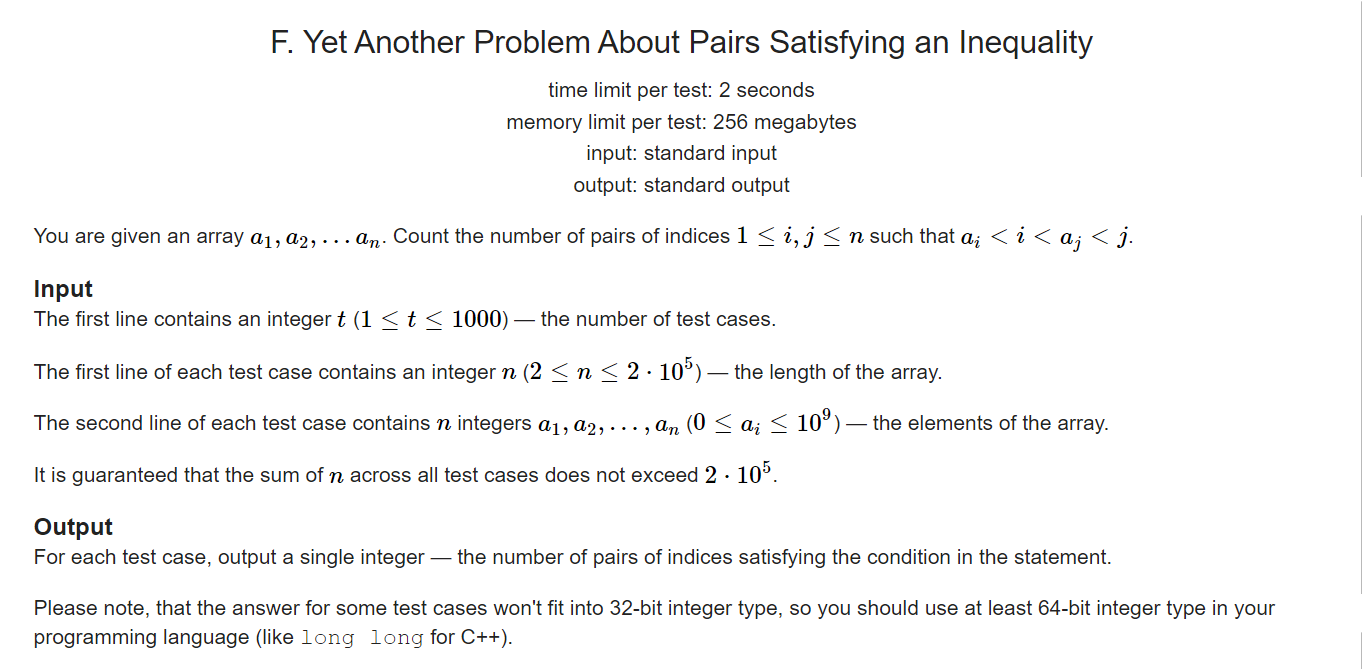 ※. ai < i , aj < j 는 만족했기 때문에 i < aj 를 만족하는 것의 개수만 찾으면 된다.
